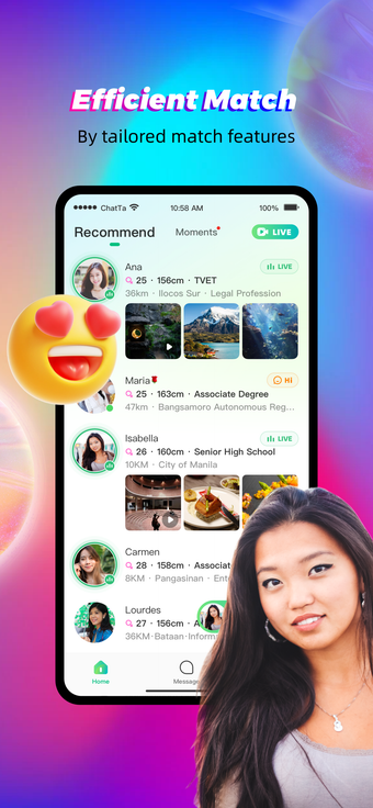 Chatta-Live Match New Friends는 의미 있는 연결과 우정을 촉진하기 위해 iPhone 사용자를 위해 설계된 무료 소셜 네트워킹 앱입니다. 이 플랫폼은 실시간 상호작용을 가능하게 하는 라이브 비디오 및 음성 채팅을 포함한 다양한 기능을 제공합니다. 안전과 개인 정보 보호에 중점을 두고, Chatta는 사용자가 지원하는 환경에서 자유롭게 자신을 표현할 수 있도록 보장합니다. 이 앱은 또한 사용자들이 사회화하고 같은 생각을 가진 사람들과 연결되기를 원하는 사용자들 사이에서 아이스 브레이킹 대화를 촉진하는 라이브 방송 룸에서 독특한 매치메이커 역할을 포함하고 있습니다.